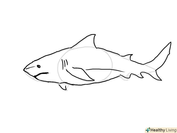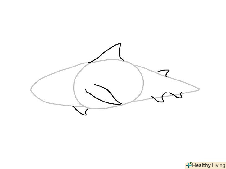 Намалюйте плавники акули; вони характеризуються своєю загостреною і злегка зігнутою формою.