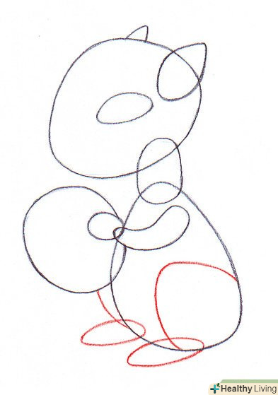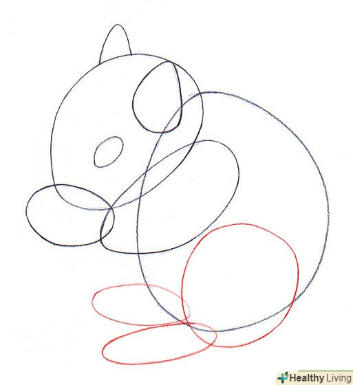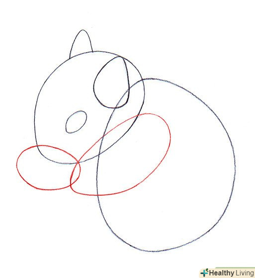 Додайте руки і ноги.- Намалюйте коло в основі груші, це буде тазова кістка білки. Так як кут огляду становить лише¾, то лише половина іншої тазової кістки повинна бути видна.
