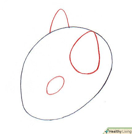 - Намалюйте два загострених овалу у верхній частині голови для вух.