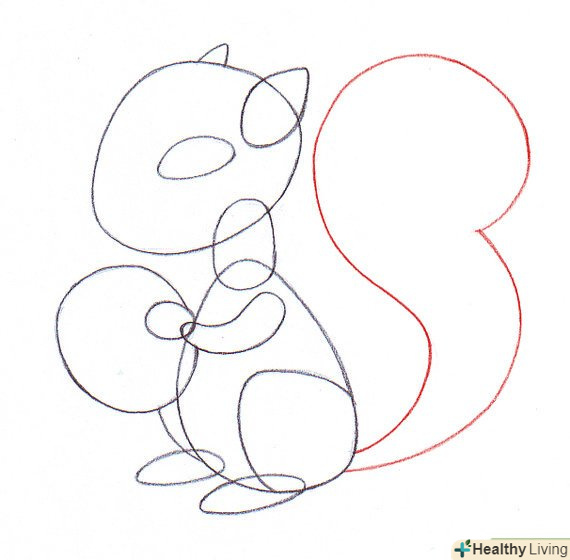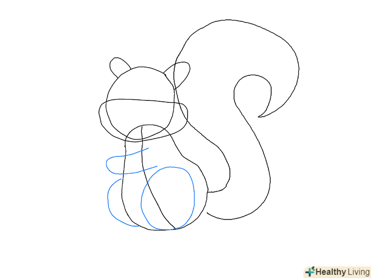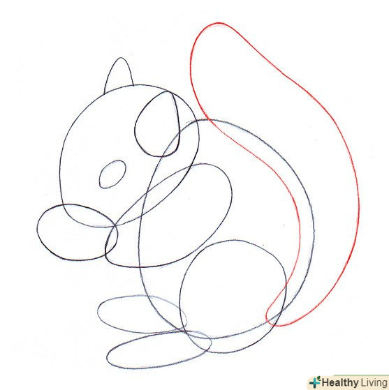 Намалюйте вигнутий довгий овал, що закінчується маленьким колом, для рук і лап. На кінці маленького кола намалюйте коло побільше. це буде Жолудь для білки.
