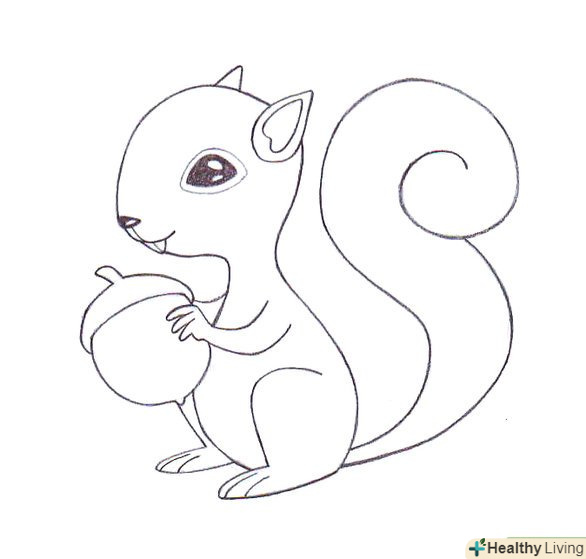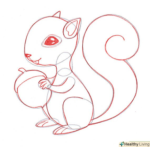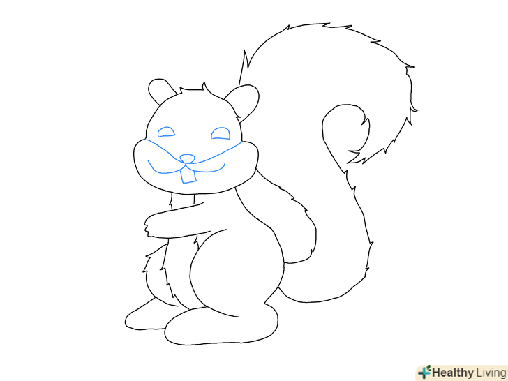 Обведіть контур білки і додайте такі деталі, як око, маленький ніс, усміхнений рот з зубами, маленькі пальці рук і пальці ніг.