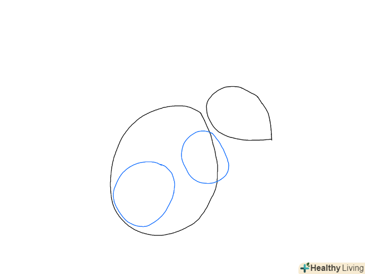 Намалюйте вуха і очей. З кожної сторони верхньої частини овальної форми намалюйте маленькі форми яєць. Усередині овальної форми намалюйте овал поменше.