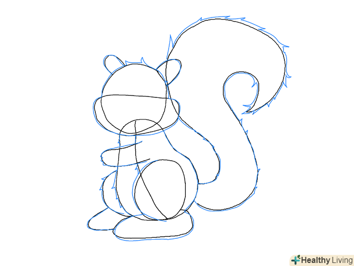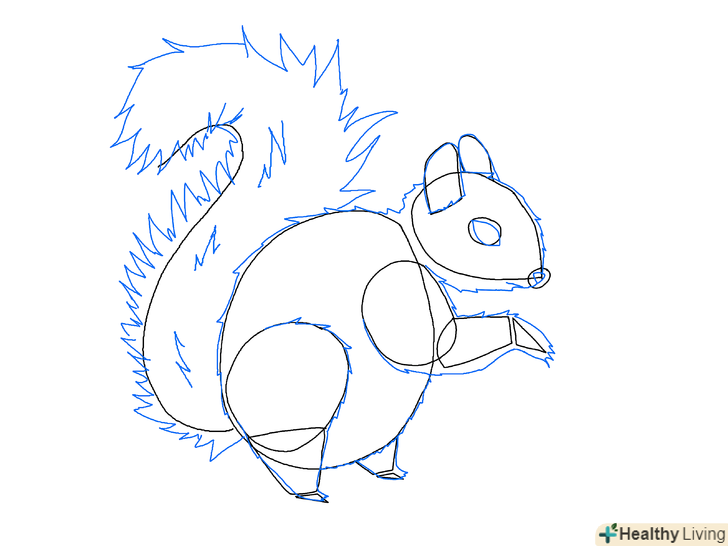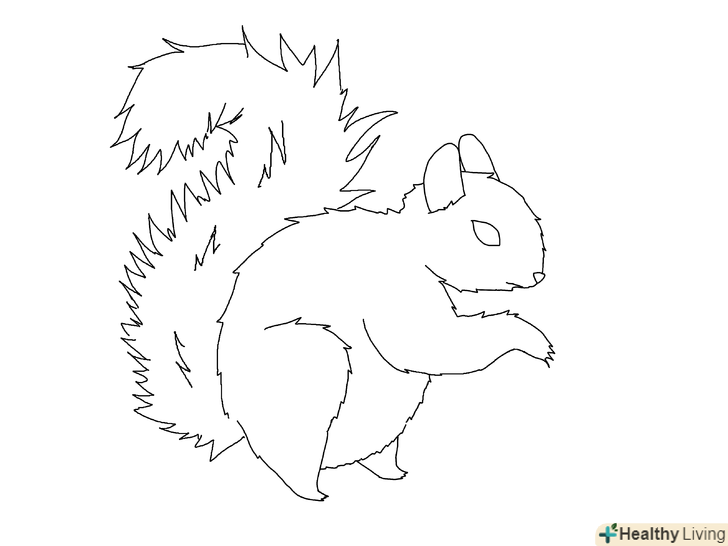 Намалюйте контур милої маленької білки і додайте такі деталі, як очі, довгі тонкі пальці і безліч завиваються волосся по всьому тілу.