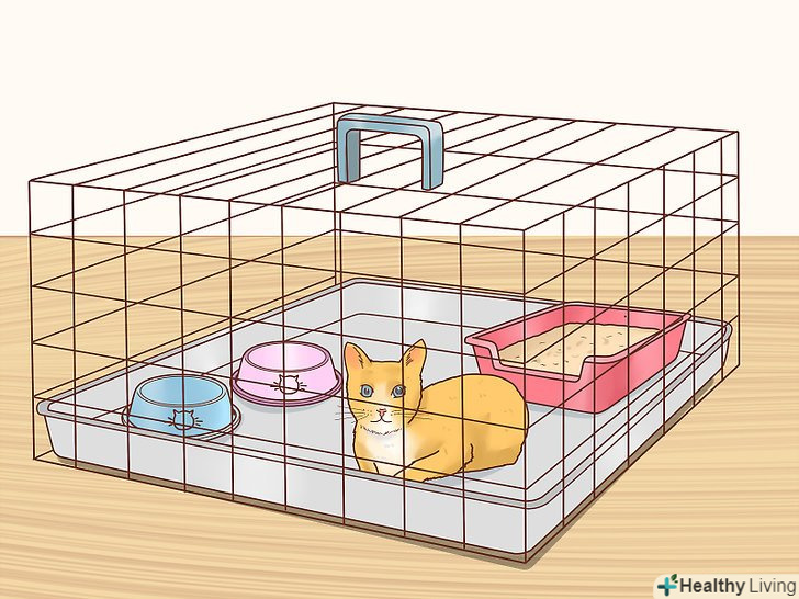 Перенесіть кота в спеціальне місце в будинку після того, як лікар його огляне і дозволить взяти його додому. тварині потрібно буде провести кілька днів в невеликому просторі в перенесенні, щоб воно могло звикнути до нового місця. [8]- У переноску повинен поміститися туалет, ліжко і миски для їжі і води.