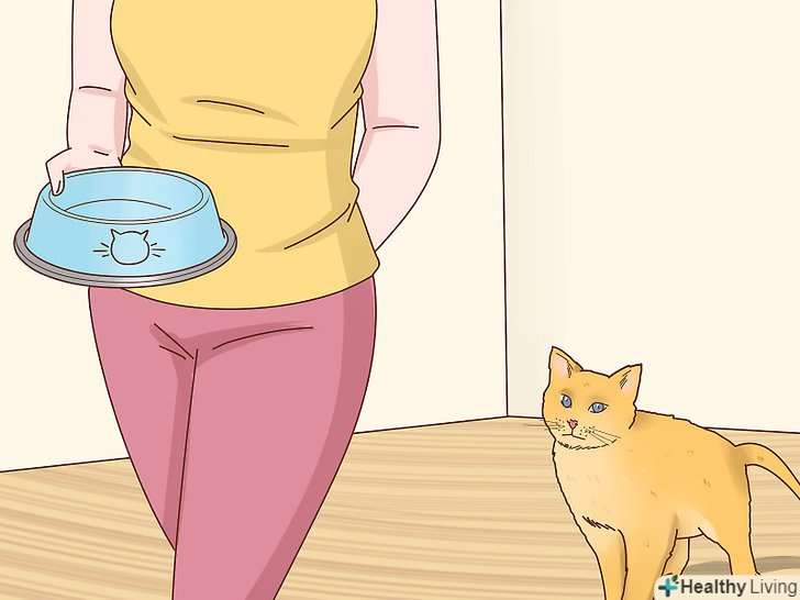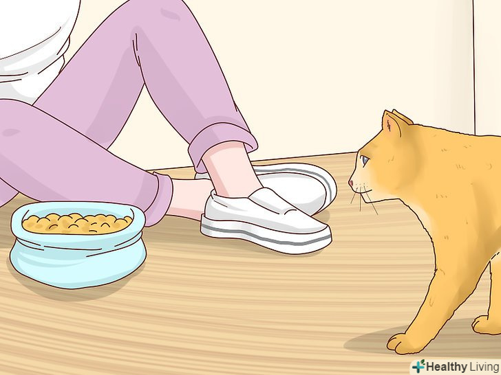Спробуйте маніпулювати почуттям голоду. якщо тварина відмовляється підходити до вас навіть через кілька днів, дозволяйте коту є тільки в своїй присутності. Не варто залишати їжу і йти-краще приносите корм і сидите поруч весь час, поки кіт їсть. [11]- Ставте тарілку з їжею поруч з собою.