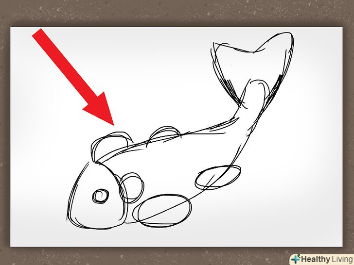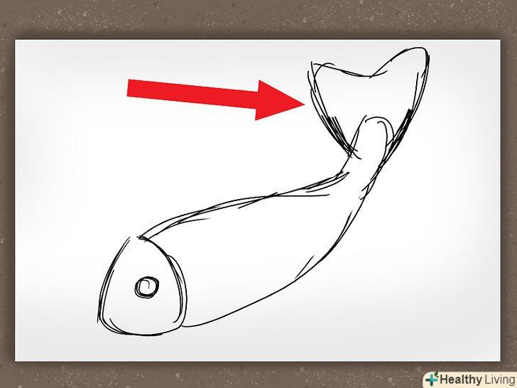 Намалюйте два півкола по сторонам від овалу. ще один маленький півколо намалюйте біля голови. Це плавники.