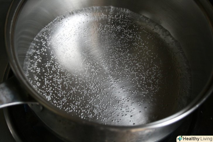 Закип'ятіть 1 чашку (250 мл) води. Налийте чашку води в каструлю і на великому вогні доведіть до кипіння.