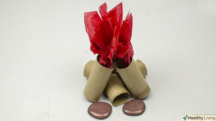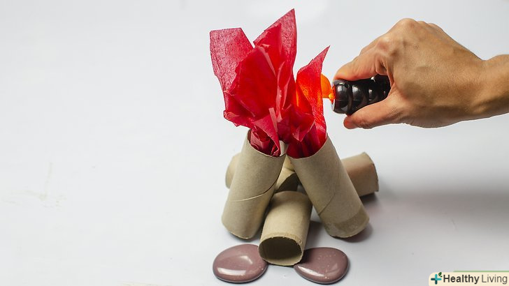 - Зробіть полум'я з цигаркового паперу. Ви можете зробити полум'я будь-якої форми з листів цигаркового паперу червоного, жовтого, і оранжевого кольорів. Потім склейте листи в один бутон, що нагадує багаття. Ось один з простих способів як зробити з паперу язики полум'я: