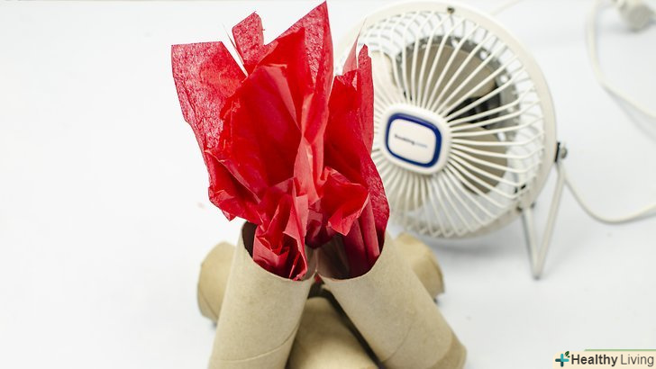 Якщо хочете, то позаду полум'я можете поставити вентилятор. якщо у вас є маленький вентилятор, то він може значно поліпшити ефект. Якщо можливо, то поставте його під папером, щоб він дув вгору, або, якщо це не можливо, подалі від неї. Увімкніть його на мінімум оборотів, так як папір не повинна сильно згинатися або майоріти.