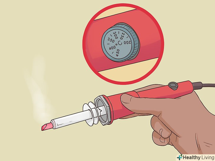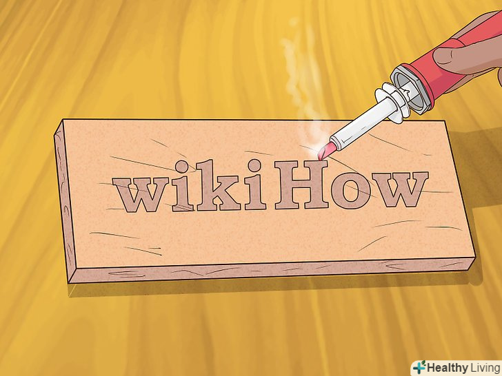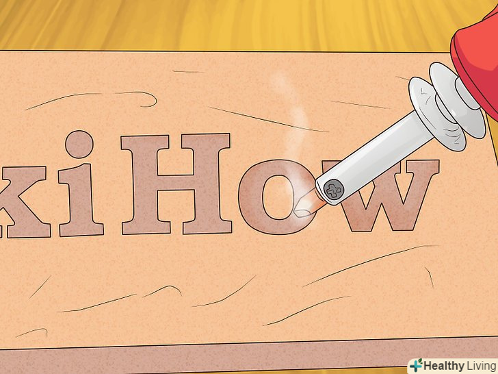 Розпаліть випалювач. вставте вилку вижигателя в розетку і дайте йому нагрітися протягом декількох хвилин. У інструкції, що додається має бути зазначено, скільки часу потрібно паяльнику для нагріву. Дочекайтеся, поки прилад повністю нагріється, щоб лінії вашої написи виходили досить жирними і чіткими. [5]- Якщо на вашому випалювачі є перемикач температур, виставте потрібну температуру. Для викреслювання жирних ліній потрібно нагріти прилад не менше ніж до 370 °С.якщо ви хочете зробити градієнт, встановіть більш низьку температуру.