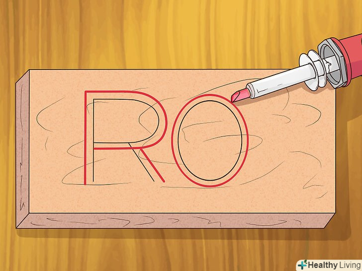 Накресліть букви. почніть випалювати плавними рухами лінії букв і не зупиняйтеся на середині лінії. Щоб лінії виходили рівними, починайте обводити букви на початку лінії і закінчуйте в кінці лінії.- Наприклад, букву " О " потрібно випалювати одним безперервним рухом. Букву " Я " можна випалити в три рухи: вертикальна лінія, верхній півколо і ніжка в лівому нижньому кутку.