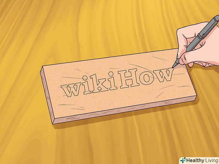 Перенесіть напис на дерево. Створіть ескіз на папері або комп'ютері, а потім перенесіть його на дерево. Спочатку накресліть напис на папері або зробіть її на комп'ютері, після чого роздрукуйте на принтері. Далі покладіть на дерев'яний виріб лист копіювального паперу, а потім покладіть зверху аркуш паперу з вашої написом. Візьміть олівець або стилус і обведіть малюнок. [2]- Переконайтеся, що ви поклали копіювальний папір фарбувальним шаром на дерево. Сторона, звернена до вас, повинна бути світліше.