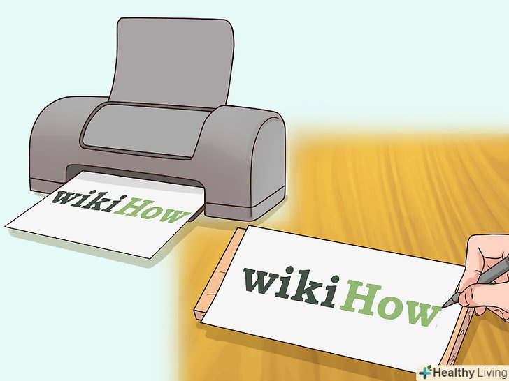 Використовуйте спеціальну насадку для перенесення друкованих зображень. існує спосіб перенесення роздрукованого зображення на деревину за допомогою спеціальної насадки для випалювача. Можливо, вам знадобиться купити її додатково. Спочатку покладіть аркуш паперу так, щоб роздруковане зображення виявилася обличчям до дерева. Потім почніть випалювати малюнок насадкою для перенесення зображення по зовнішній стороні паперу. Під впливом високої температури паяльника чорнило відокремляться від паперу і перенесуться на поверхню деревини.- Цей спосіб застосуємо тільки з малюнками, роздрукованими на принтері, однак якщо у вас струменевий принтер, він не спрацює.