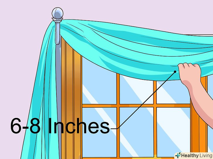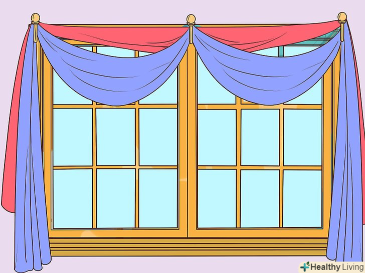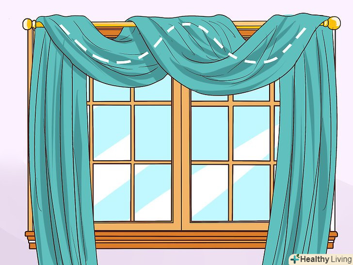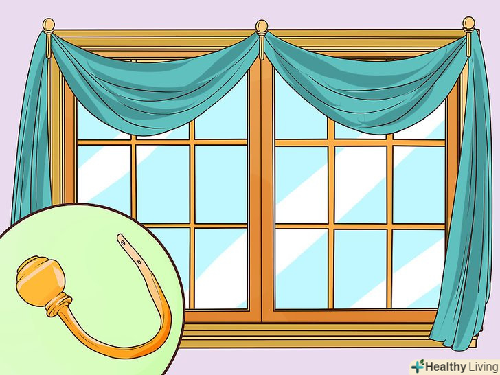 Сховайте непривабливий карниз для штор. Позбавтеся від непривабливих оку кріплень для штор, сховавши їх під добре задрапірованим ламбрекеном. Цей метод добре виглядає, коли кронштейни карниза закріплені по сторонах від вікна. Просто зачепіть ламбрекен за кінці карниза з обох сторін і дозвольте тканини царствено звисати вниз.