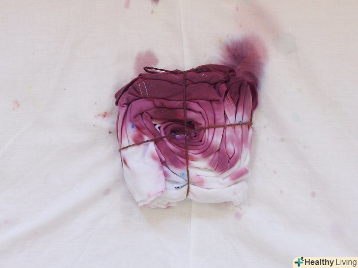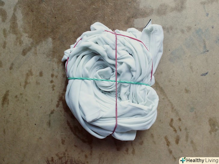 Оберніть футболку однією або декількома гумками. гумові смуги повинні перетинатися в центрі, роблячи футболку схожою на сир, розрізаний на шматочки.