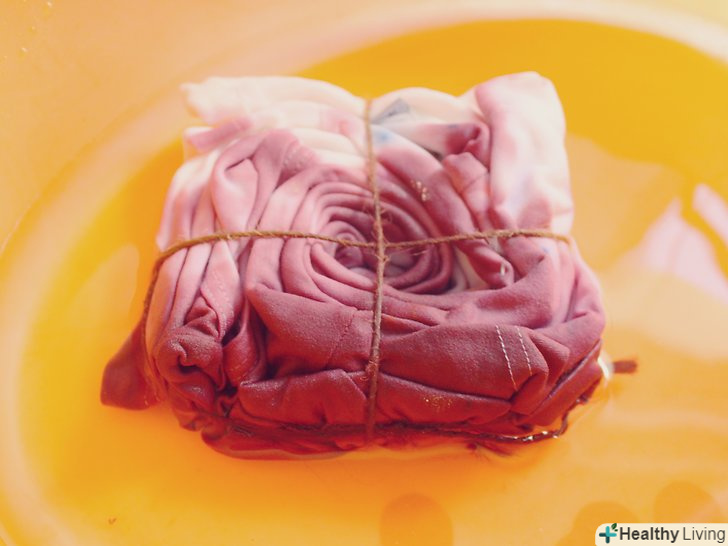 Після закінчення 24 годин, дістаньте сорочку з пакета і прополощіть водою. переконайтеся, що надлишки барвника вимилися і з футболки вичавлюється прозора вода. Потім, зніміть гумки, і погляньте на своє творіння.