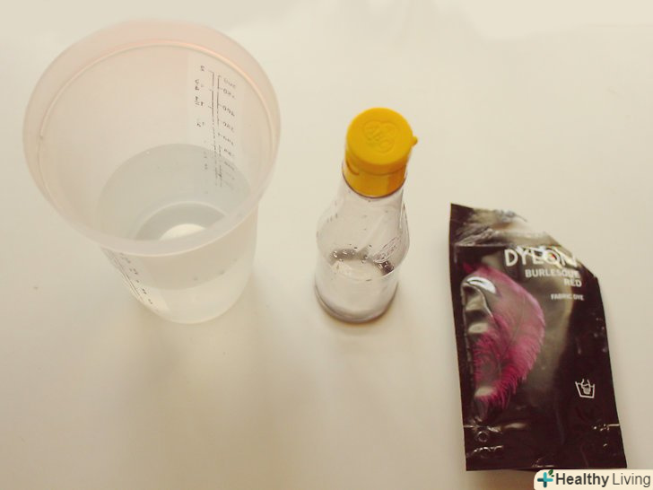 # підготуйте фарбу/фарби. деяким подобається використовувати кілька барвників на їх сорочках, але необхідний тільки один. Кожен колір барвника буде складатися з:- 1 столова ложка (15 мл) органічного азоту (для збереження кольору барвника)