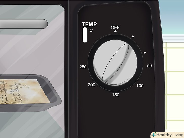 Якщо ви хочете швидко висушити папір, розігрійте духовку до мінімальної температури. у духовці папір швидко висохне, і ви встигнете завершити все за один день. Однак не слід сушити папір занадто швидко, інакше вона стане крихкою і може навіть обвуглитися. Щоб уникнути цього, виставте в духовці мінімально можливу температуру. [13]- У більшості духовок мінімальна температура становить близько 90-100°C. Якщо є режим «розігрів», використовуйте його.