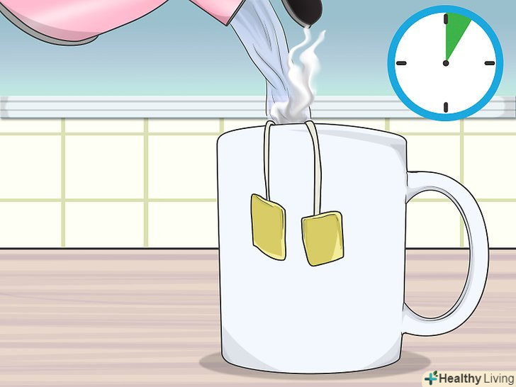 Залийте чайні пакетики окропом і почекайте близько 5 хвилин, поки вони заваряться. обережно налийте окріп в кухоль, щоб заварити чай. Не наливайте воду до самих країв гуртки, щоб вона не пролилася. Зачекайте приблизно 5 хвилин, поки чай завариться, або до тих пір, поки вода не придбає потрібний вам колір. [4]- Не доливайте воду до країв гуртки приблизно на 3-5 сантиметрів.