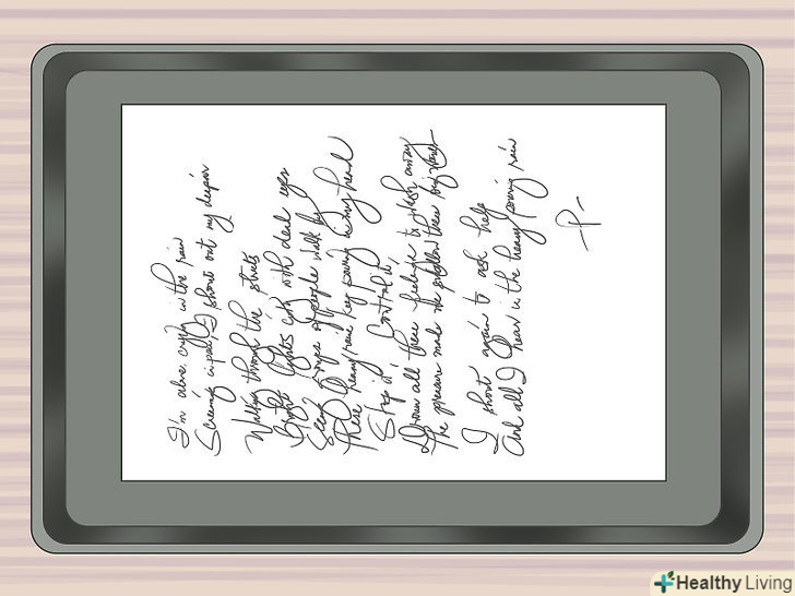 Спочатку напишіть або надрукуйте на папері те, що вам потрібно. після того як ви пофарбуєте папір, вона не зможе рівномірно увібрати чорнило, і написаний від руки або роздрукований текст буде виглядати неохайно і неакуратно. Найкраще написати, надрукувати або намалювати все заздалегідь. Після цього почекайте, поки чорнило повністю висохнуть, щоб вони не розпливлися. [5]- Підійде будь-який папір, від звичайної білого паперу для принтера до більш щільної альбомної. Чим щільніше буде папір, тим світліше вийде відтінок і тим довше вона буде сохнути.