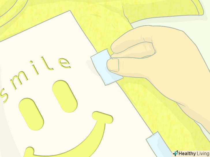 Закріпіть шаблон на футболці за допомогою скотча. переконайтеся, що скотч не перекриває ті частини, на які повинна потрапити фарба.