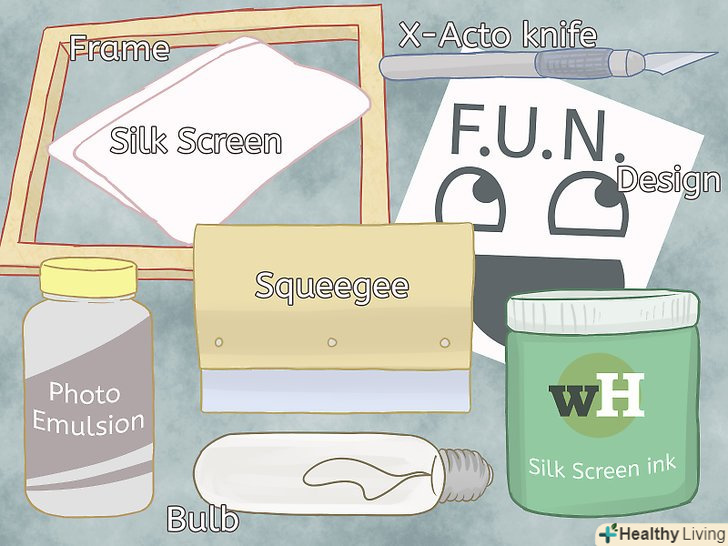 Підготуйте все необхідне. для шовкографії вам будуть потрібні деякі приналежності, які можна купити в найближчому магазині або в інтернет-магазині:- Чорнило для шовкографії (переконайтеся, що ви купуєте чорнило саме для тканини, з якої зроблена ваша футболка)