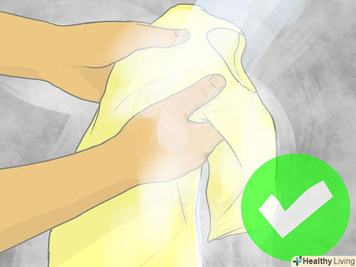 Дайте футболці просохнути протягом ночі. Не важливо, чим ви прикрашали футболку, не піддавайтеся спокусі надіти її відразу ж. Якщо ви використовували клей для тканини або блискітки, не трясіть футболку до тих пір, поки блискітки не висохнуть. Залиште футболку на сонці або акуратно повісьте її, щоб прискорити процес.- Не всі блискітки однакові – використовуйте саме ті, які призначені для прикраси тканини.