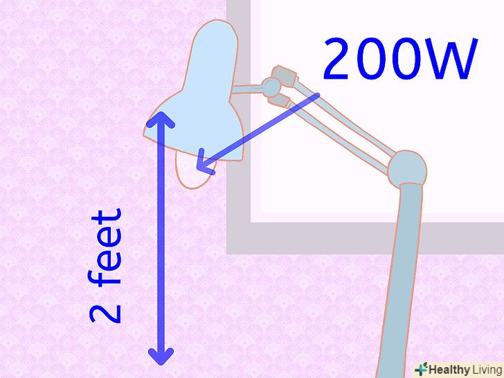 Приготуйте місце, де ви будете проявляти емульсію. в цьому місці треба буде встановити лампу. Дотримуючись інструкції до фотоемульсії, розташуйте лампу над Темною плоскою поверхнею. Різна емульсія проявляється різний час, тому уважно читайте інструкція виробника.- Наприклад, якщо емульсію треба проявляти 30 хвилин при лампі потужністю 200 ват, встановіть лампу в 200 ват на відстані 30-60 см над столом. Вам треба буде покласти сітку під лампу.