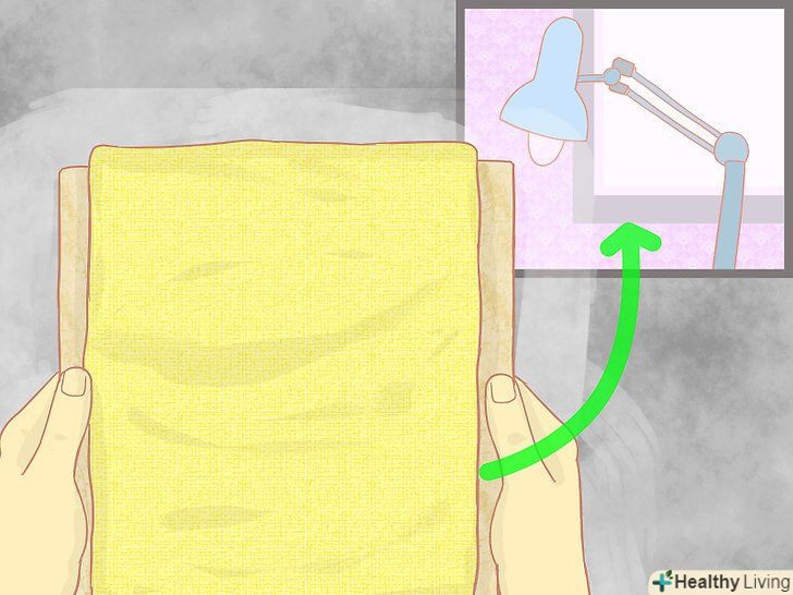 Перенесіть висохлу сітку на поверхню, де ви будете проявляти малюнок. накрийте її рушником, щоб реакція зі світлом не відбулася завчасно. [7]