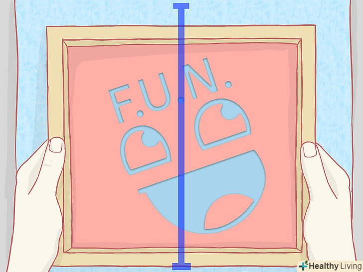 Покладіть шаблон на середину сітки. Шаблон повинен розташовуватися на Верхній стороні сітки з емульсією, щоб він лежав на сітці, а сітка на кілька сантиметрів височіла б над столом. Покладіть шаблон на середину сітки.- Покладіть ваш шаблон навпаки , щоб в результаті вийшов правильний малюнок. Подивіться на шаблон, щоб він виглядав як треба, потім переверніть його і тільки тоді покладіть на сітку.