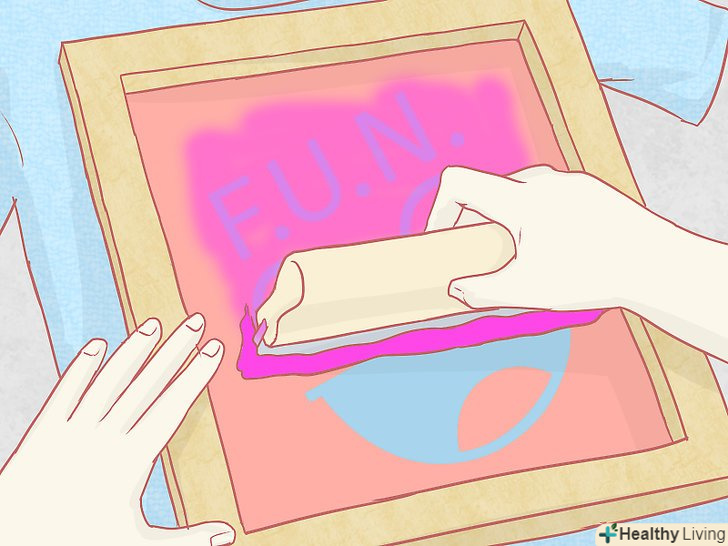 Розподіліть чорнило ракелем. нанесіть чорнило тонким шаром на малюнок. Рівномірно натискаючи на ракель, розподіліть їх по всьому шаблону.- Чим більше тиск, тим темніше вийде малюнок. [10]