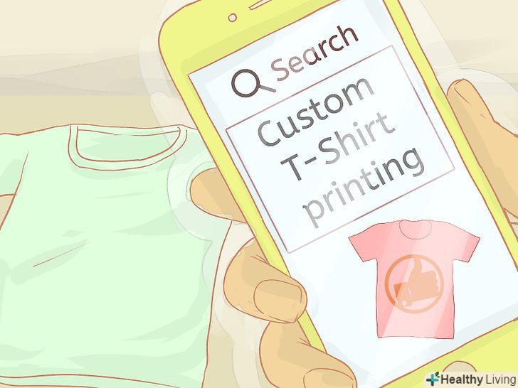Моделюйте свою футболку в Інтернеті, щоб вона виглядала професійно. Є різні веб сайти, які надрукують вашу картинку або дизайн на футболці, не безкоштовно, звичайно. Введіть в рядок пошуку вашого пошукача "друк на футболках", порівняйте ціни і Послуги, Дізнайтеся, чи можна змоделювати футболку самостійно на сайті.- Чим більше футболок ви замовляєте, тим нижчою буде ціна.