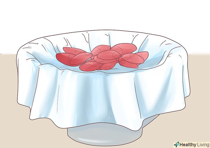 Візьміть шматок щільної марлі і закрийте миску зверху. краї тканини повинні трохи звисати по периметру миски.