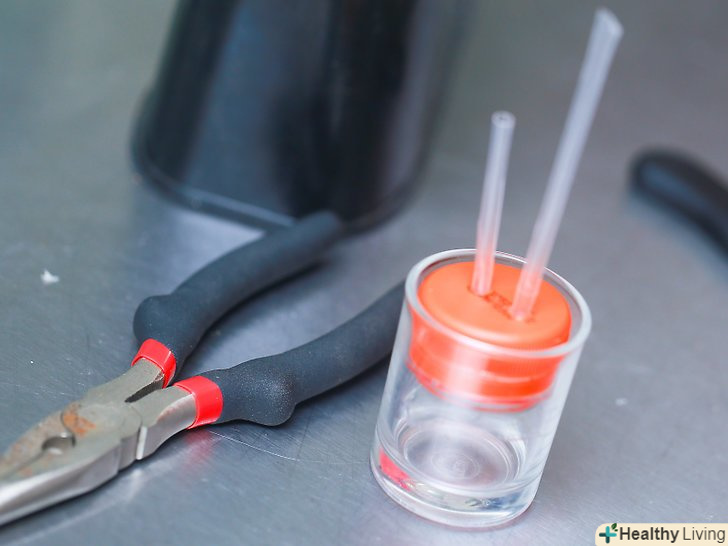 Візьміть все необхідне. Вам необхідно буде взяти/купити невеликий скляний флакон (за розміром підійде флакон з екстрактом женьшеню, який можна купити в аптеці), невелику соломинку або трубочку, гострий ніж і ізоляційну стрічку.