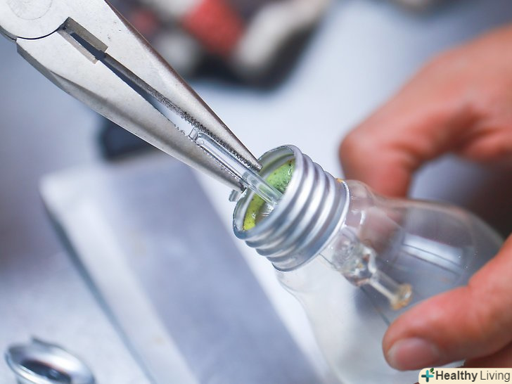 Видаліть нитку напруження. плоскогубцями дістаньте нитку розжарення з лампочки. Нитка розжарення - це металевий дріт, яка загоряє лампочку при включенні світла. Коли ви дістанете її, у вас залишиться лише порожня колба.