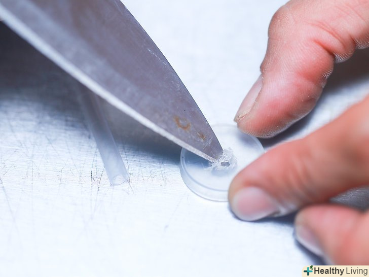 Зробіть в кришечці отвір. візьміть ніж і виріжте круглий отвір достатнього розміру, щоб в нього можна було просунути трубочку. Намагайтеся зробити рівний отвір без грубих країв.