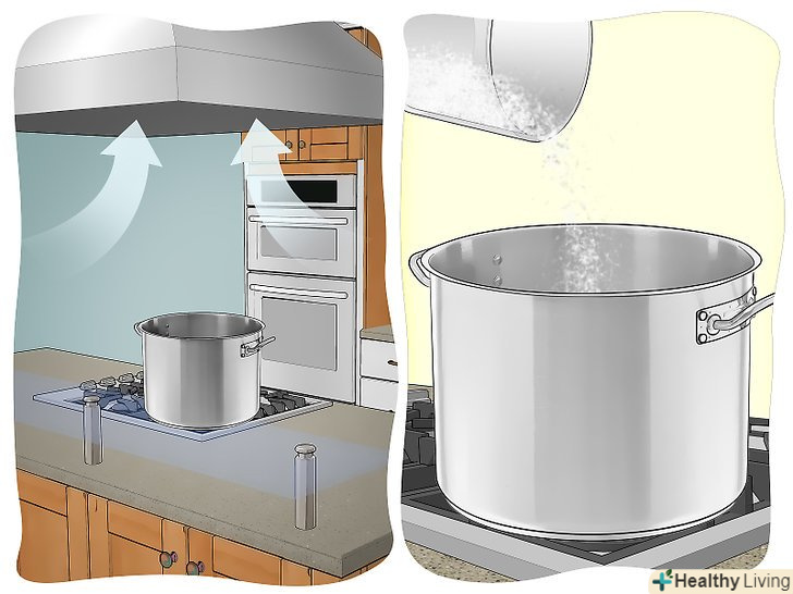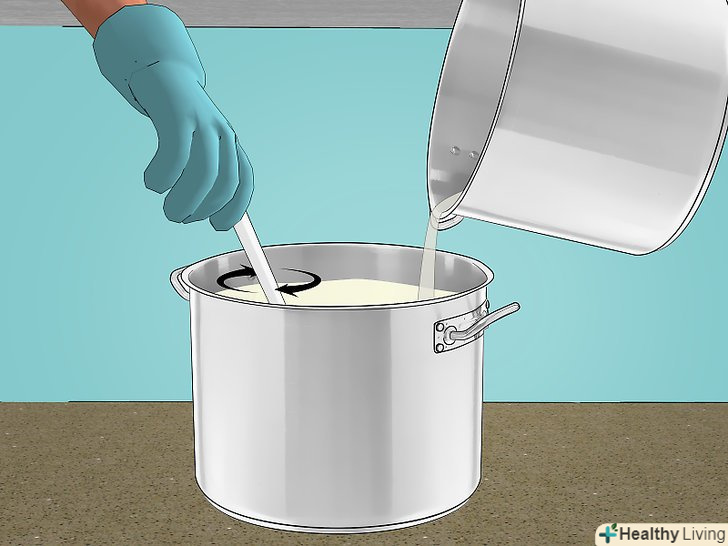 Додайте луг у воду. помістіть ємність з водою під витяжний вентилятор вашої печі або переконайтеся, що вікна відкриті, і кімната добре провітрюється. Додайте луг у воду повільно, злегка помішуючи ложкою, поки вона повністю не розчиниться.- Дуже важливо додати луг у воду, а не навпаки, так як в іншому випадку реакція може бути занадто швидкою і небезпечною.