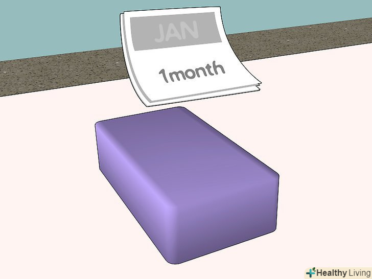 Дайте милу висохнути. покладіть його на пергаментний папір, на плоску поверхню або на сушарку на два тижні, щоб процес омилення завершився, і мило повністю висохло. Через два тижні переверніть мило і дайте йому висохнути з іншого боку.