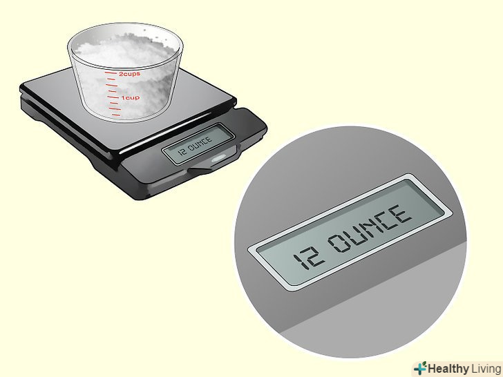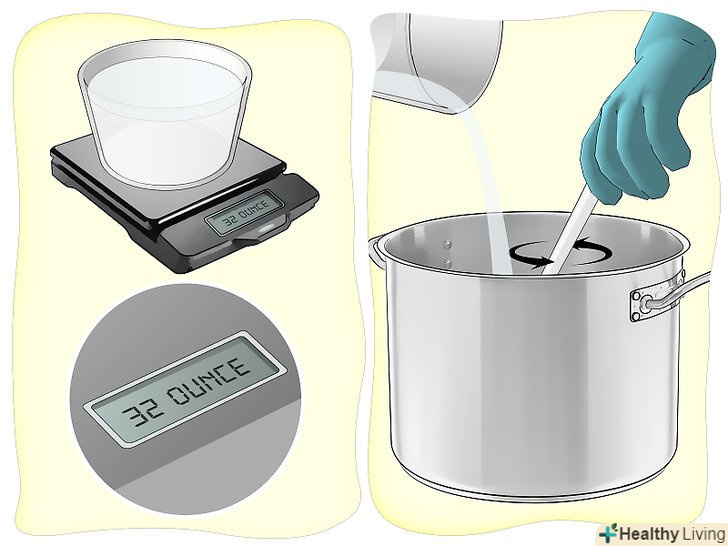 Відміряйте 350 мл лугу. для точного виміру використовуйте ваги і перелийте луг в мірний стакан.