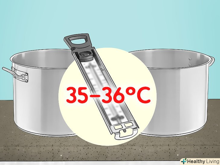 Виміряйте температуру лугу і масел. використовуйте різні термометри для лугу і масел і продовжуйте стежити за їх температурами, поки луг не досягне 35-36 градусів за Цельсієм, а масла не досягнуть такої ж або більш низької температури.