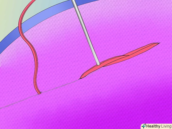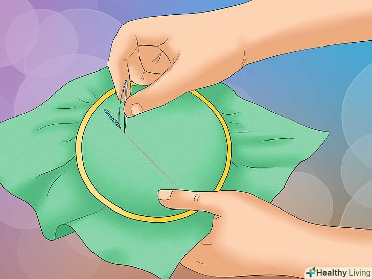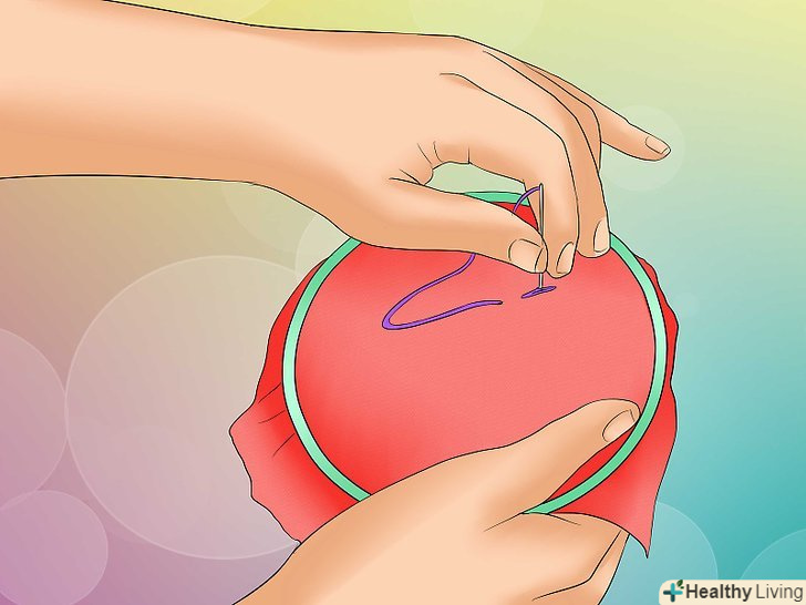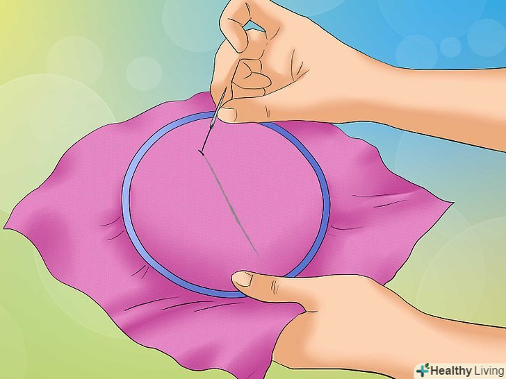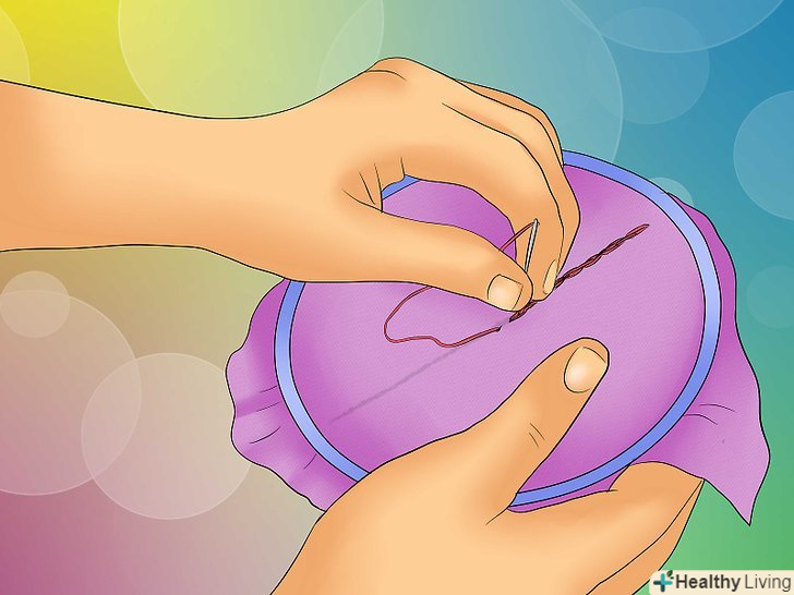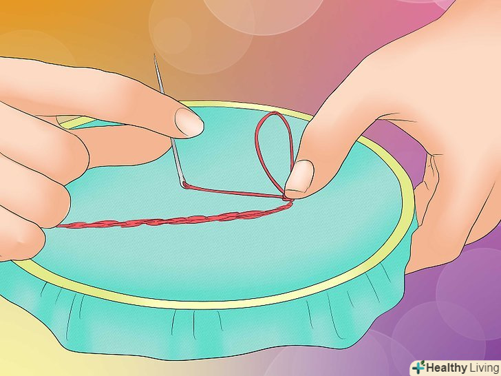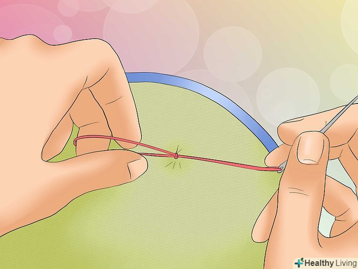 Зав'яжіть вузлик на кінці нитки. коли ви вишили всю лінію до кінця, закріпіть шов маленьким вузликом з виворітного боку тканини.- Інший спосіб закріпити шов – заправити кінчик нитки в кілька попередніх стібків з вивороту тканини.