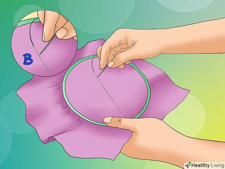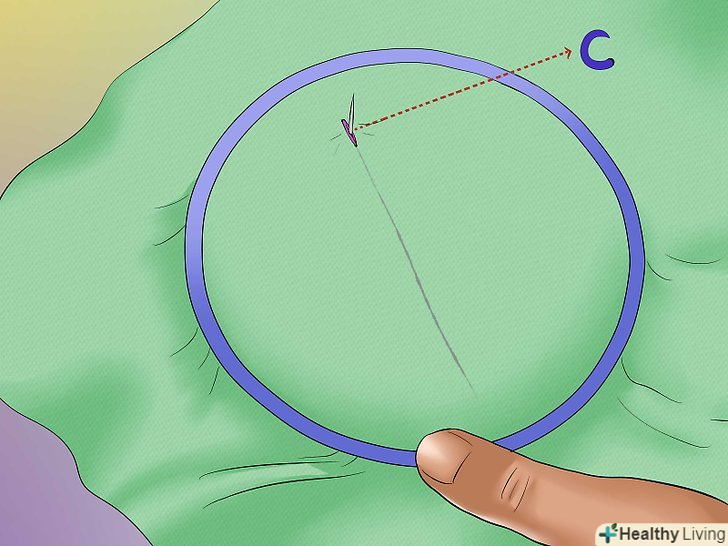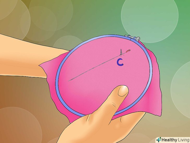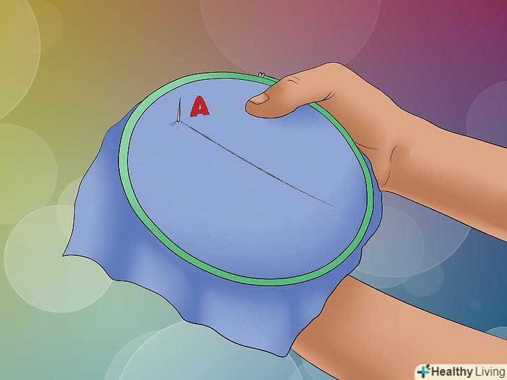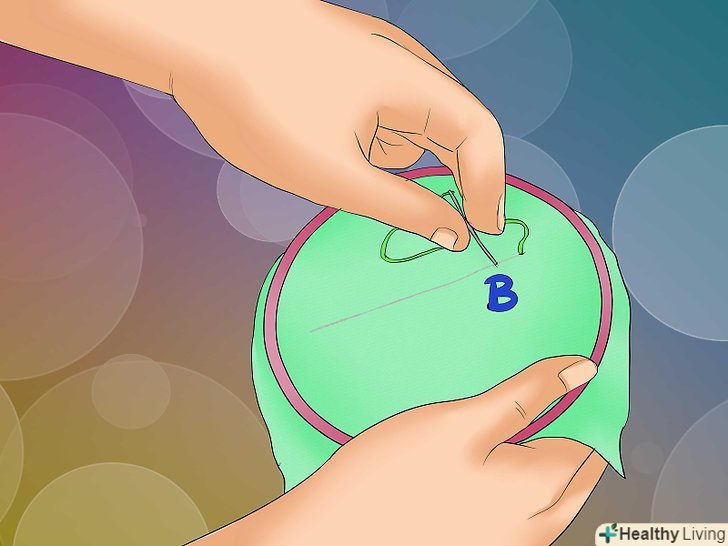 Введіть голку в точку на лінії трохи далі точкиА . Вколіть голку в тканину трохи далі на початку лінії. Введіть в цю точку тільки кінчик голки.- Це буде точкаB .