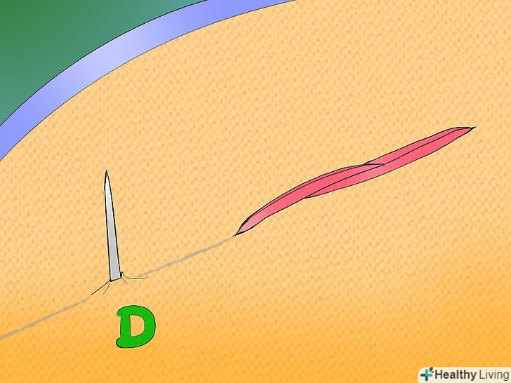 - Не протягуйте голку через точкуB повністю. На виворіт має "виглядати" лише від однієї третини до половини довжини голки.