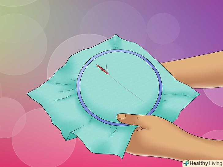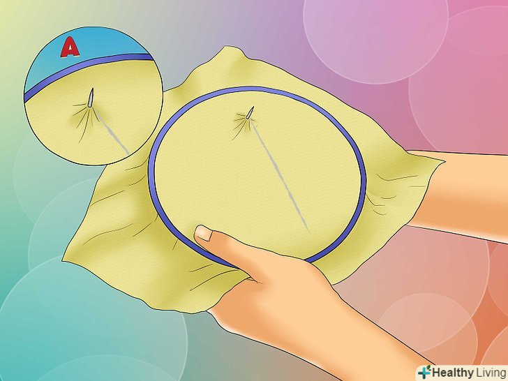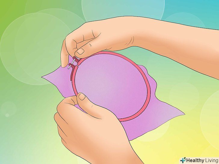 Натягніть тканину на п'яльці. заправте тканину в п'яльці так, щоб нанесені малюнок розташовувався по центру.- Покладіть тканину на внутрішнє кільце п'ялець.