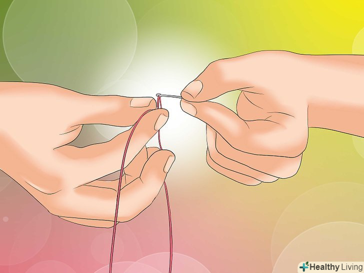 Заправте нитку в вишивальну голку. вставте нитку для вишивання в вушко голки. Зав'яжіть вузлик.- Для вишивання розщепленим швом, як звичайним, так і "назад голку", виберіть нитку в шість складань. Вам потрібно буде рівно розсовувати (розщеплювати) нитку з кожним стібком, залишаючи по три ниточки по обидві сторони від голки. [1]