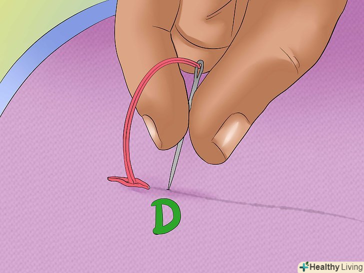 Вколіть голку в наступну точку на лінії. Просуньтеся трохи далі вздовж лінії і вколіть голку в тканину.- Це буде точкаD .