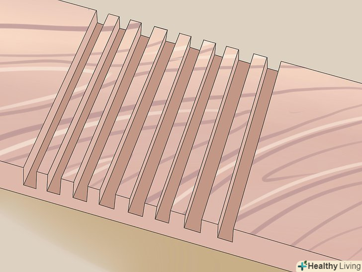 Використовуйте великий косинець або лінійку як напрямну для пилки і зробіть на тильній стороні фанери серію пропилів (виїмок) на відстані близько 6 мм один від одного.