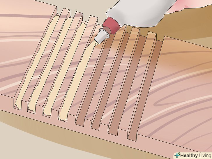 Заповніть надрізи столярним клеєм. ви можете заповнити їх столярним клеєм і до гнуття в тому випадку, якщо надрізи стануть недосяжними після того, як фанера буде зігнута і закріплена на місці.