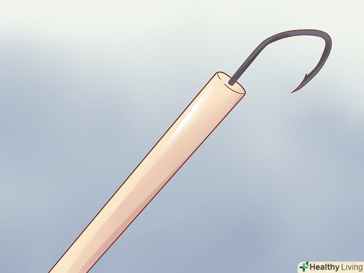 Вставте гачок у верхню частину дюбеля. для цього вам необхідно зробити отвір в центрі дюбеля канцелярської кнопкою. Загвинтіть гак в отвір так, щоб він не зрушувався з місця.