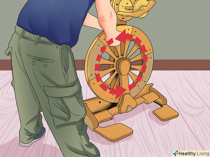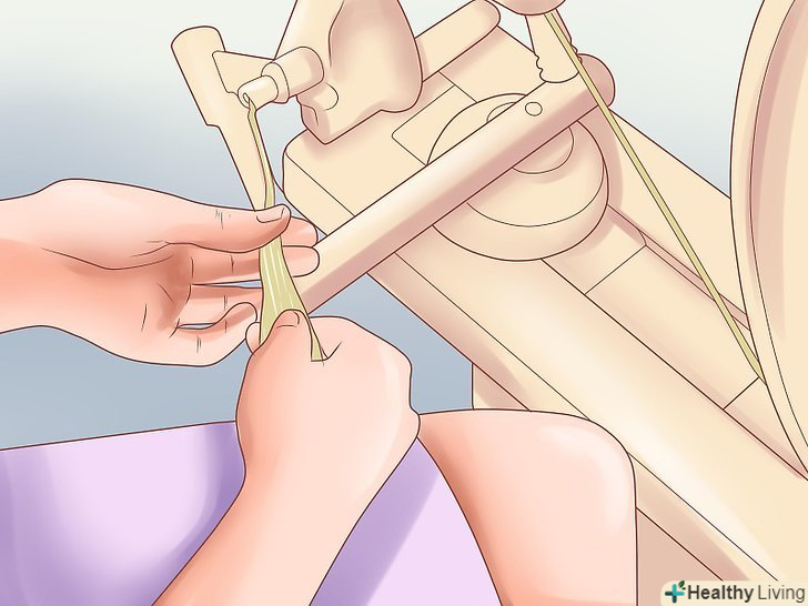 - Прядка працює, обертаючи котушку, використовує при цьому колесо. У той час як ви обертаєте колесо, котушка обертається. Скручуйте волокно в руці і намотуйте на котушку. Ви повинні змінювати швидкість котушки, щоб накручувати пряжу на котушку. Різні типи прядильних коліс можуть полегшити обгортання нитки навколо котушки по-різному.